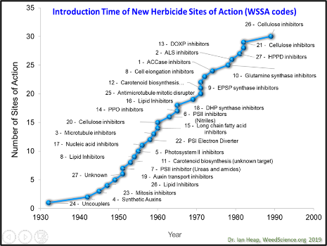 The 1970’s and 1980’s saw a dramatic increase in the number of new modes of action and active ingredients introduced in the marketplace, and any concerns about herbicide resistance were put aside, with the assumption that “it could not happen here”.