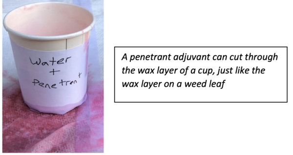 Generally, pesticides need to dissolve in water in order to apply them (“hydrophilic”). However, plant leaves are waxy, so they also need to be able to dissolve in wax (i.e. not dissolve in water, “hydrophobic”). This is a problem… As a result, most herbicides will require an adjuvant of some kind to help penetrate the leaf surface, though sometimes the adjuvant is built-in to the formulation (e.g. Horizon® NG, Axial® BIA).